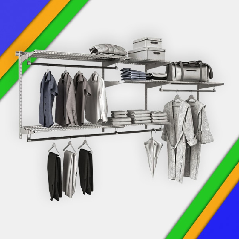 Благодаря модульной конструкции, система GS-350 запросто может быть подстроена под параметры помещения, так как собирается в любой удобной конфигурации. Крепление осуществляется при помощи зацепов, что позволит свободно регулировать полки по высоте. При необходимости расширения или модификации гардеробной системы, дополнительные полки, корзины и перекладины свободно добавляются, позволяя организовать максимально подходящие для Ваших требований условия.