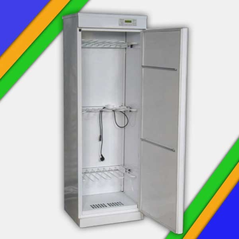 Сушильный шкаф «Hotstorm» предназначен для сушки мокрой одежды, обуви, белья, а также различной спортивной формы и инвентаря. Внутри шкафа есть три секции для подвески одежды.