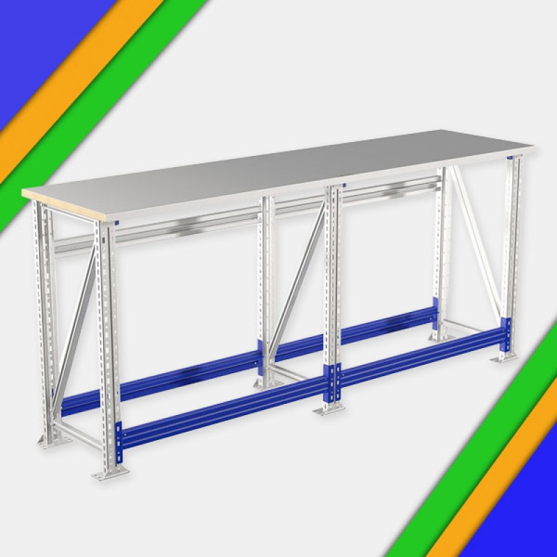 - За счет единой опоры верстаки можно устанавливать в линии и секции.