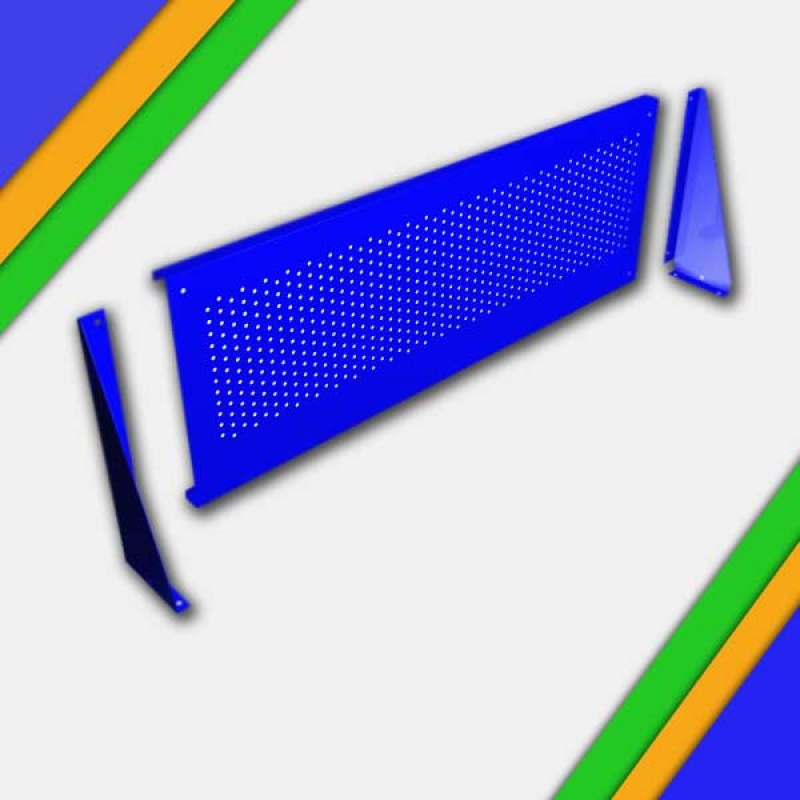 Перфорированный экран не входит в стандартную комплектацию верстаков и приобретается отдельно. В комплектацию перфорированного экрана входят также два кронштейна для крепления экрана к рабочей поверхности верстака металлического и крепеж. Толщина металла экрана - 1,2 мм. Диаметр отверстия - 7,0 мм Все модели могут дополнительно комплектоваться металлическими крючками 8 см и 5 см длиной, удлиненными полками, укороченными полками,держателем для ключей и держателем для инструментов.